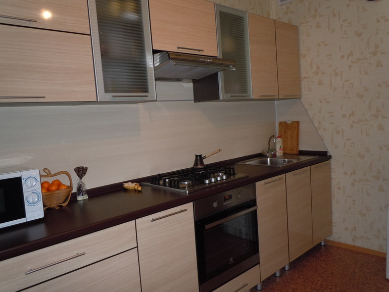 Спасибо, кухня у нас 11,5м2, мебель по одной стене. Тоже думали вначале угловую, но решили место не занимать и так шкафов предостаточно. В общем я довольна, от себя добавлю(может пригодится на будущее) очень удобны выдвижные ящики и так называемая бутылочница ( но она у меня широкая слева от духовки), меня там кофе, чай, крупы .... выкатил и все видно. Фото от окна прилагаю.