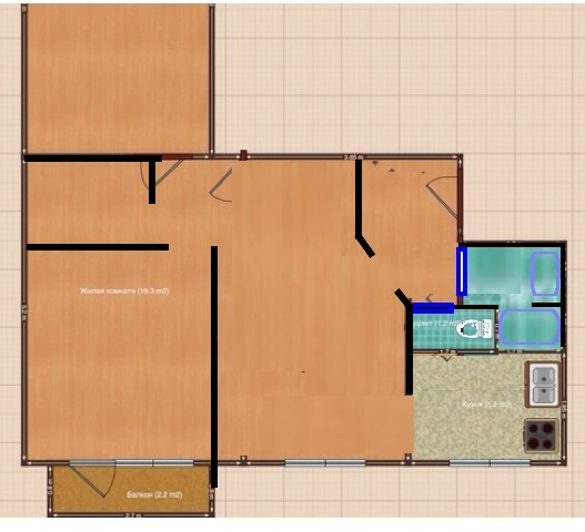 Извините, текст куда-то исчез.У нас семья из 4 человек:я,муж и двое разнополых детей,каждому хочется выделить по своему уголку и самим хотелось бы полноценной спальни.Смущает только маленькая кухонька,но,видимо,без объединения ее с комнатой не обойтись...(