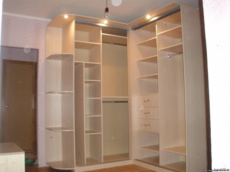 Радиусный шкаф действительно очень компактно смотрится и при этом в нем довольно много места.
