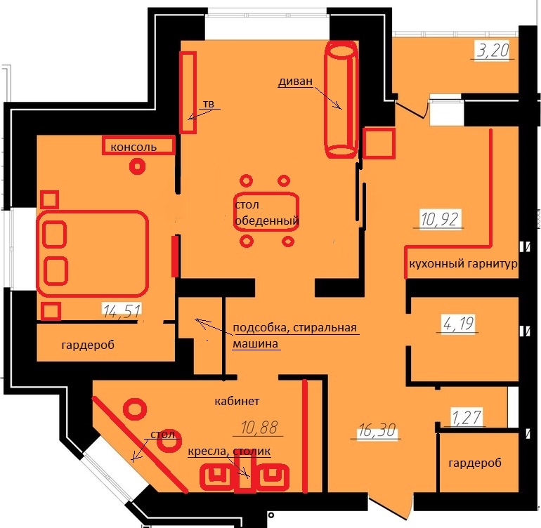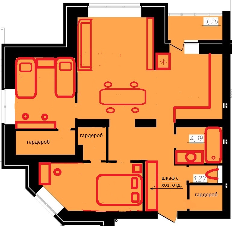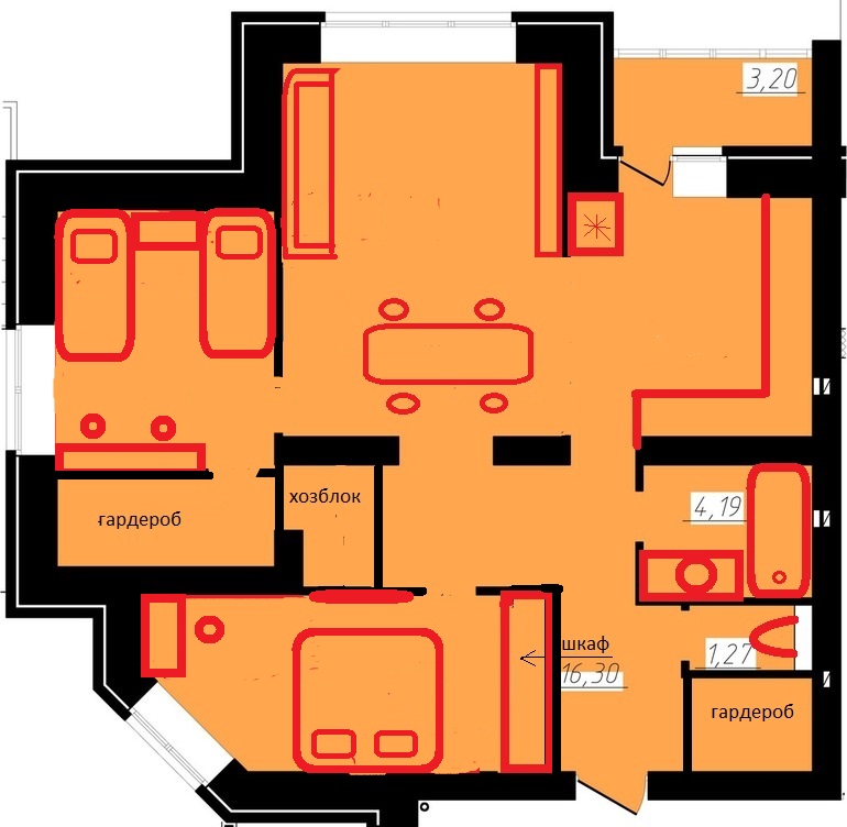 Хочется сделать перепланировку, конкретных критериев нет, просто чтобы понравилось...голова идет кругом, уже столько всего передумала, но все не то...может быть у кого-то есть свежие идеи...заранее спасибо...