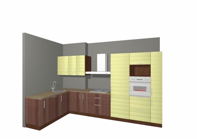 Возможности с фото нет, я не дома и еще недели две не буду дома. По короткой стороне бутылочница, ппм на 60, мойка. На верху нет шкафов, весит телевизор. Далее по длиннной стороне от окна шкаф со счетчиком и газовыми трубами, упилен на глубину 30 см, далее колонна с духовым шкафом, потом встройка холодильник, варочная поверхность, шкаф с котлом и в углу сушка посудная.