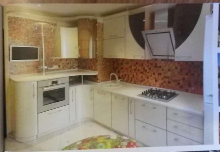 у нас тоже кухня с выступом, мы будем делать по типу этоого,но другие фасады...но сам вариант с этим углом смотрите!!котел конечно вопрос...наверно в шкаф ...