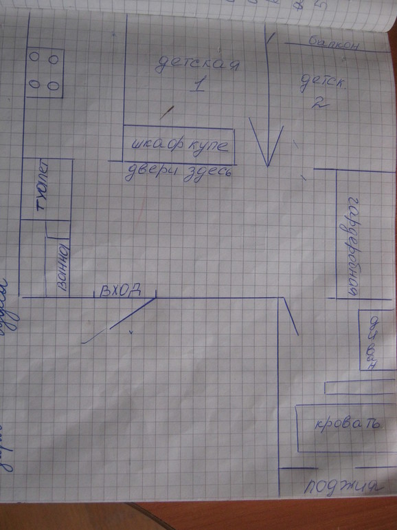 А как Вы комнаты распределили ?У нас трешка, но гораздо меньшей площадью, и зал был проходнойНо в целом планировка похожаМы его изолировали, и в конце коридора отделили гардеробную, хотя она у нас получилась всего 3кв.м.Но у нас дети разнополые, и разница не маленькая в возрасте, поэтому детям было отдано по комнате, а из оставшейся комнаты-вагончика сделали себе маленькую спальню-гостиннуюВот специально начертила как у нас расположены комнаты