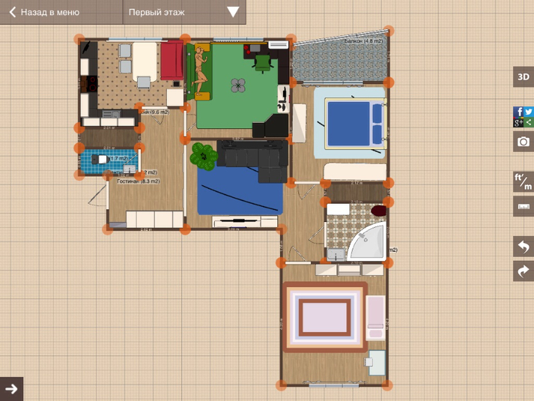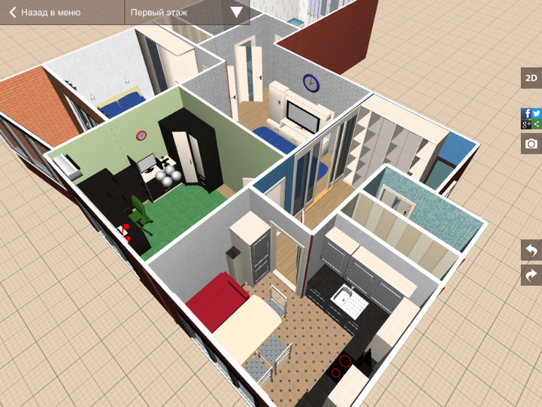 У вас не соблюден немного масштаб. Например кухня в реальности будет меньше чем га трехмерке.