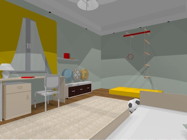 Интерьерное решение детской комнатыВсем здравствуйте!Хочу поделиться с вами проектом(громко сказано конечно:)) детской комнаты для сына.Площадь помещения довольно таки большая - 18м2. Я мучилась очень долго и ночами не спала,придумывая интересные идеи,создала большущую кучу эскизов,и наконец остановилась на одном из них.Его то я вам и представляю:)Что скажете?Может быть кто-то что-то может посоветовать,очень интересно ваше мнение!!!!!