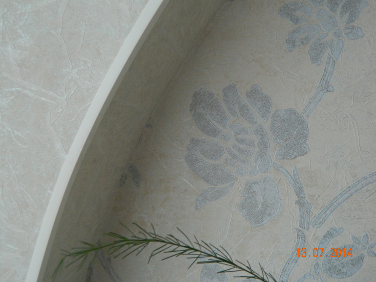 холодноватые обои…или свеженькие)), мне уютнее в более теплых тонах..и цвет двери и ламината вполне тепленький…может и текстиль тепленький пошить?