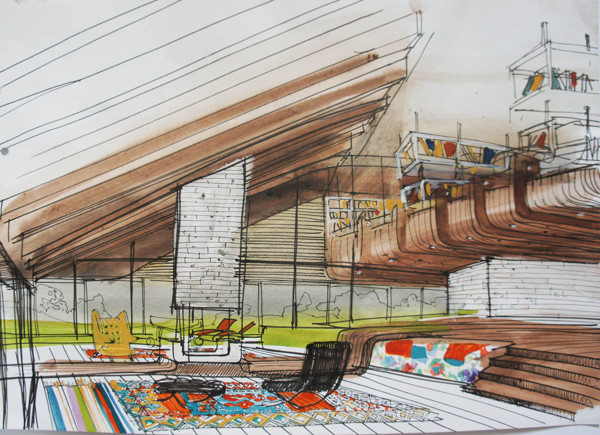 пусть электрики кинут туда провода и повесят над обеденной зоной вытянутые лампочки, или "фонарики" на длинных жгутах