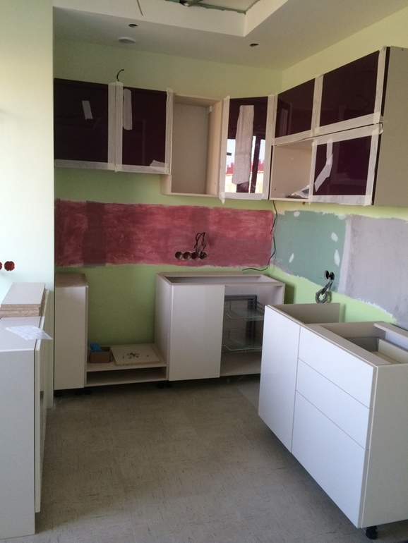 Интерьерное решение кухниДобрый день, есть кухня, фото в процессе сборки, низ молочный, верх баклажан, стены едва зеленые, плитка на полу сероватая, выбираю фартук, хочу светлый, но немного добавить фиолетового, присмотрела следующее. И еще столешницу не знаю, светлую или темную брать?
