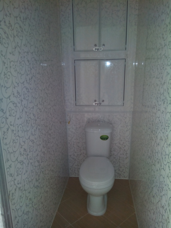 А мне туалет в целом нравится. Я бы только шпингалеты убрала, но и плитку на пол более подходящего цвета сделала. Например серого как в ванной. А где вы такие панели покупали, я такие не видела, а очень понравились.