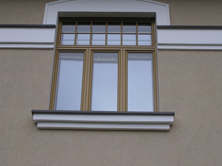 В обрамление окна на фасаде явно не хватает каких-то деталей =)Деление окна почему-то кажется не пропорциональным.