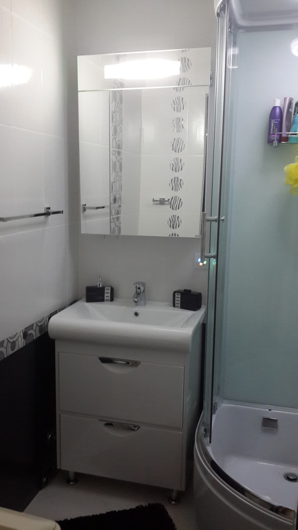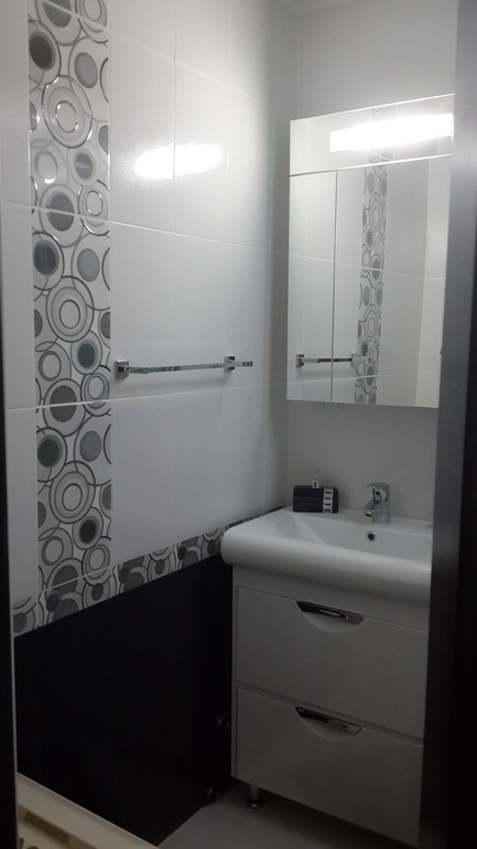 классная плитка !! муж уговаривает меня на кусочек черного в ванной а я все боюсь , а у вас красиво получилось и совсем не съело пространство )
