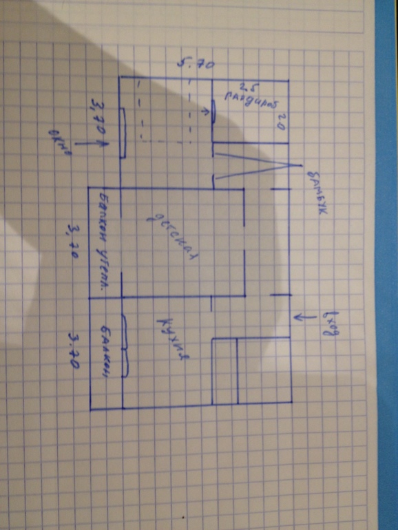 Собственно у меня просьба помочь с дизайном спальни. Хочется вписать туда бамбуковую перегородку и нашу кровать. Перегородка нужна т.к. в этом коридорчике будет стоять стояка с аппаратурой мужа и его пластинками. В спальне будут колонки на ножке на противоположной стене от кровати.