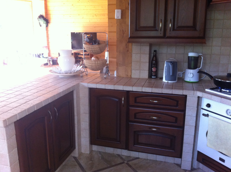 Долгое время искали где можно сделать такую кухню именно на заказ. Мастеров мало. В основном предложения готовые, в которых то одно, то другое нам не нравилось. А у нас были четко определена плита в углу, угол сам получается очень глубокий. Да и вообще мы сами разрабатывали план ящиков и всего остального. Потом мы все-же нашли компанию, которая этим занимается. Ездили искали плитку..выбрали эту, кремовую с фактурой. Потом так же выбирали фасады и ручки. Это так приятно от начала до конца продумывать это святое место в доме!)) Еще фото