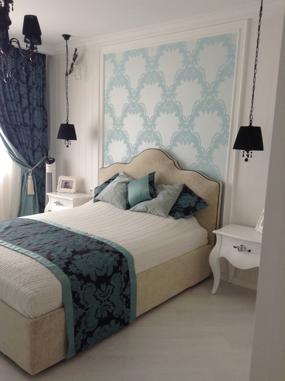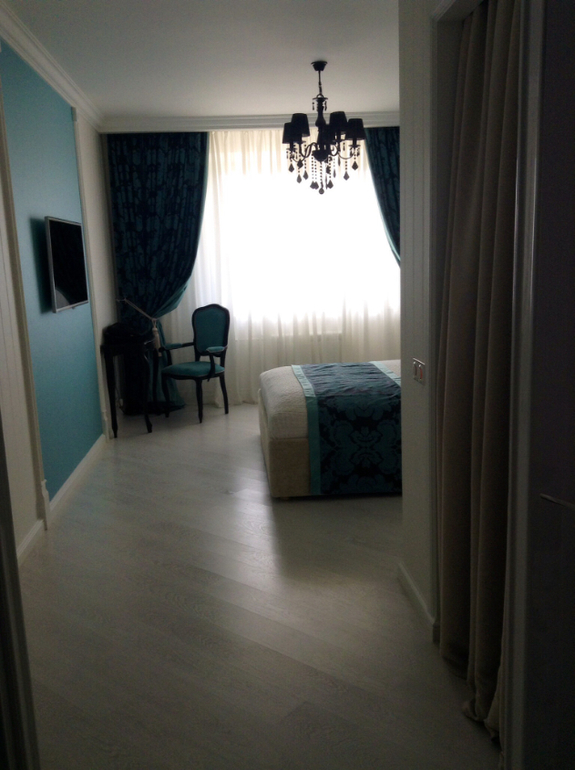 И эти проовода меня немного напрягают) спальня у нас изначально была с гардеробной, и была еще одна дверь спальню мы ее убрали. Когда думала какой будет спальня изначально нашла фотографию в интернете и начала от нее отталкиваться. Правда с бирюзовых тонах. Вот фотка о чем мечталось