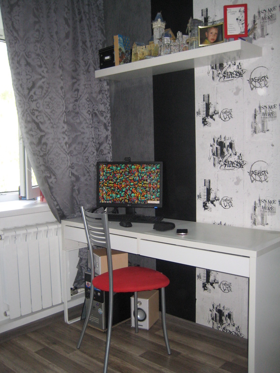 Привет. Хочу показать и послушать ваши комменты по оформлению комнаты моего старшенького сына. Переехали мы в новую квартиру 2 года назад, ремонт до сих пор продолжается. Первое что сделали это кухня и потом эта комната. Сынок раньше делил комнату с братом, и она была простой и детской. Переехав, решили сразу, что теперь у него будет отдельная, серьёзная, пацанская комната. Егору 11 лет. Комната 8 кв. м. Придумывала сама, сынок только одобрял либо нет мои дизайнерские задумки. Делали всё сами. Ребёнок очень доволен. Чувствует себя комфортно. Все бабушки были в ужасе. Далее фото.
