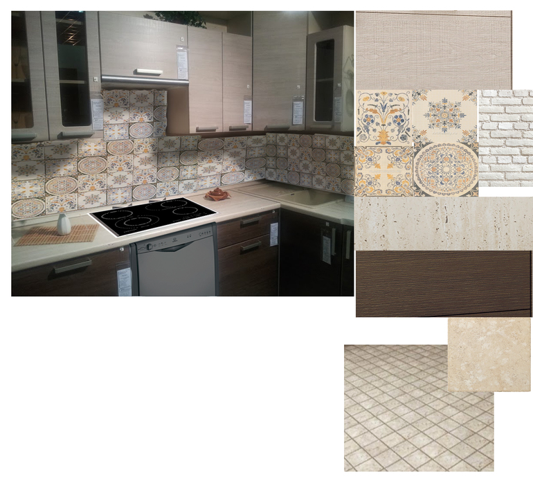 Интерьерное решение кухниДевушки-умницы,подскажите мне идеи цветового оформления кухни. Я поигралась с фотошопом и теми материалами,которые бы мне хотелось увидеть, составила коллажик. Вот такой: