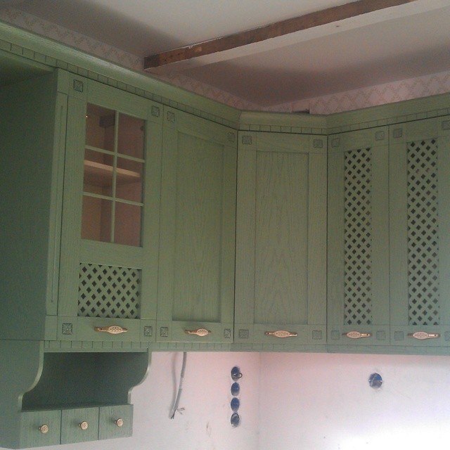 Кухню собрали. Фото с телефона. На балки на смотрите, они еще не крашенные. Будут белые. Стиль кантри у нас. Вытяжка 90 см