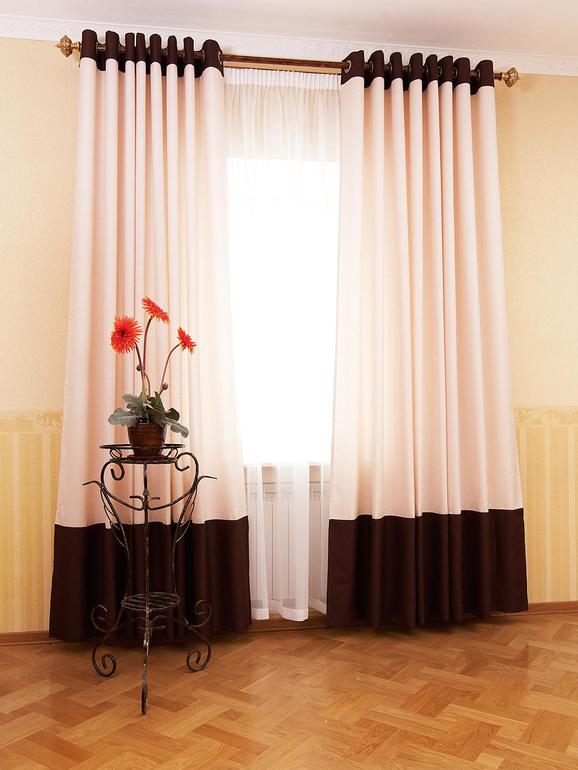по центру должна быть вуаль, а по бокам из портьеры из плотной ткани. Варианты с подхватами не хотелось бы, т.к. штора с подхватом висит в спальне.