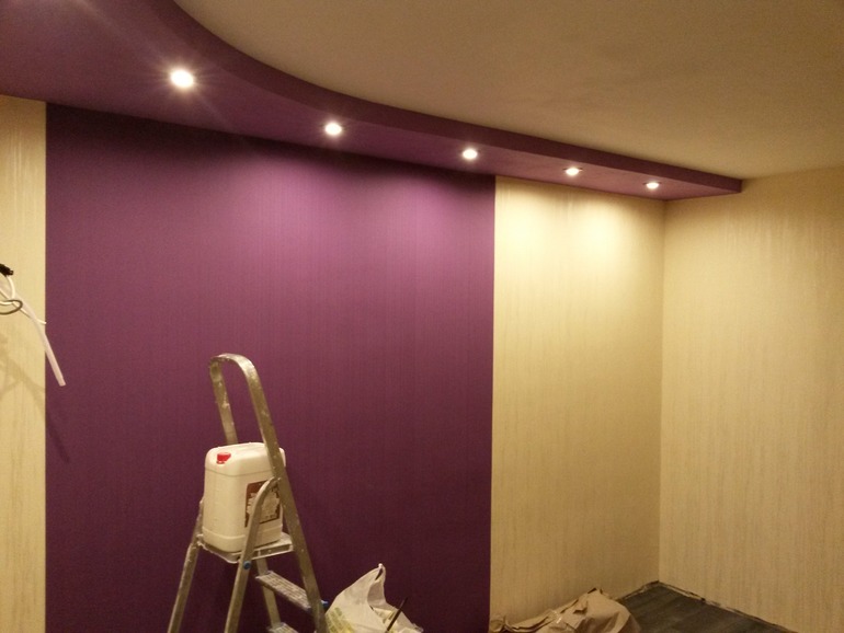 цветные потолки, а тем более волнами — это безвкусица и смотрится ужасно!