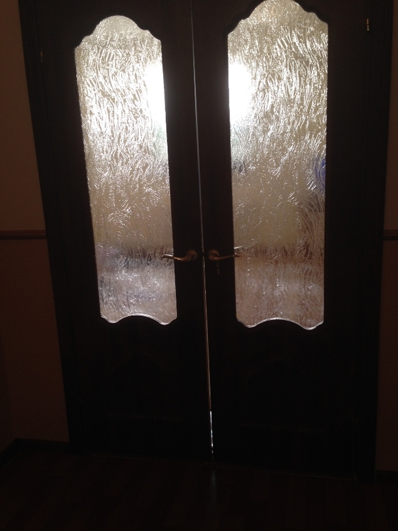 В зале, в спальне, с детской у нас двери со стеклом, а в новую пристройку такие двери уже не нашла. И купила другие.