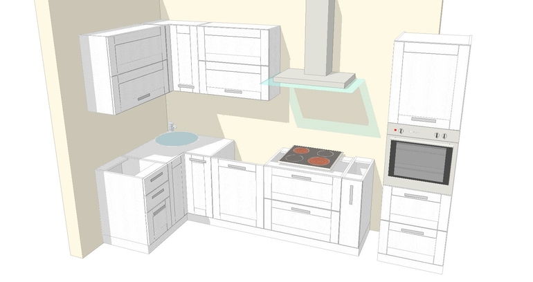 несколько комментариев: мойка сдвинется влево и будет не так глубоко в углу. Пенал с духовкой напротив варочной поверхности вместе с холодильником.