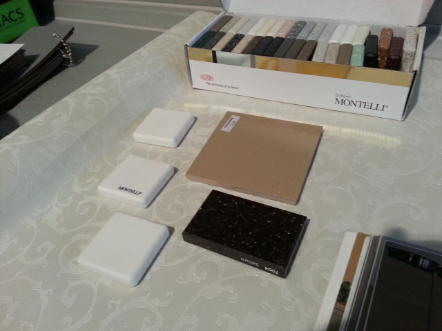 !!!Девочки огромное всем Спасибо за мнения и советы, вы очень помогаете!!! Остановили свой выбор на кофейном цвете. Думаем насчет столешницы- темную или белую, но наверное чисто белая сюда будет хорошо.. (обои под образцами наши, кстати тут они не такими теплыми смотрятся)