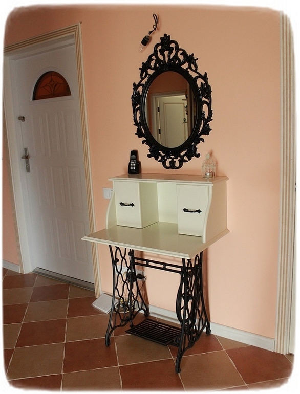 Спешу поделиться своей радостью- осуществилась очередная, моя интерьерная мечта! Я так долго добывала эту чугунную станину от швейной машинки, а в итоге нашла ее у родителей. Это "ноги" от швейной машинки ПГМЗ,- почти антиквариат. Принадлежала эта машинка старшей сестре моей бабули ( во как!), так что это можно сказать еще и семейная реликвия. Столешница сделана на заказ по моим размерам из массива. С размерами я слегка промахнулась и ящички получились высоковатыми. Но меня это совершенно не смущает и не мешает любить мне этот столик трепетно и нежно.