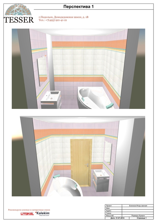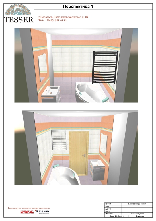 Я бы немного изменила второй. По оранжевой стене внизу под.бордюром и ваерху над бордюром плитку разложила как на других стенах. Т.е. в низу 4 розовых, 1 оранжевая, 1 полосатая, 5 оранжевых, 1 полосатая, 1 оранжевая, 1 розовая.
