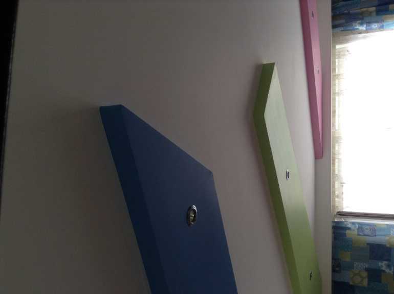 На белом потолке синий, салатовый, розовый и желтый цвета. Под желтым сектором видны обои. Хочу их переклеить. Правильно хочу? Насколько я понимаю, обои нужны однотонные и максимально нейтральные. Какие? Какая тюль-шторы? Окно большое трехстворчатое, без балкона. В общем, всё это великолепие надо как то увязать между собой:). Принимаются любые советы, спасибо!