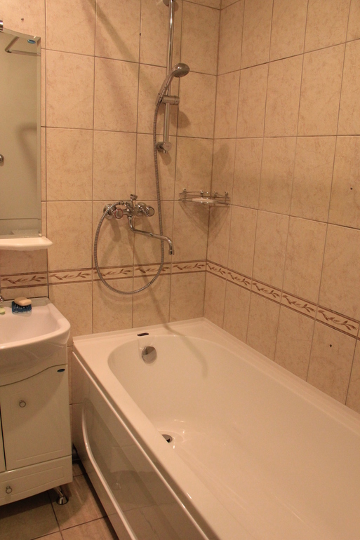 у нас на съемной размер ванной комнаты 150/120.ванночку храним в самой ванной,когда сами моемся — выносим на кухню