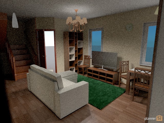 Про стойку — я думала. Вот пример моего думальства. Мебель вся условно, в редакторе есть не все как я хотела бы. Так что это просто "схематично". :).