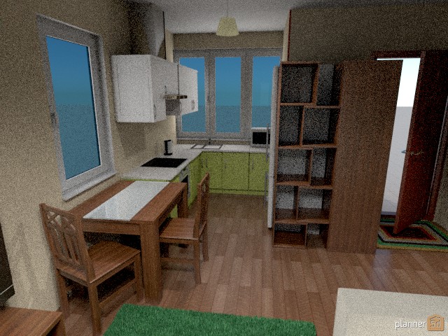Детали каждой зоны еще не обдумывала. Только кухню просчитываю. А вот цветовую расцветку хочу именно такую: зеленый+белый+коричневый.