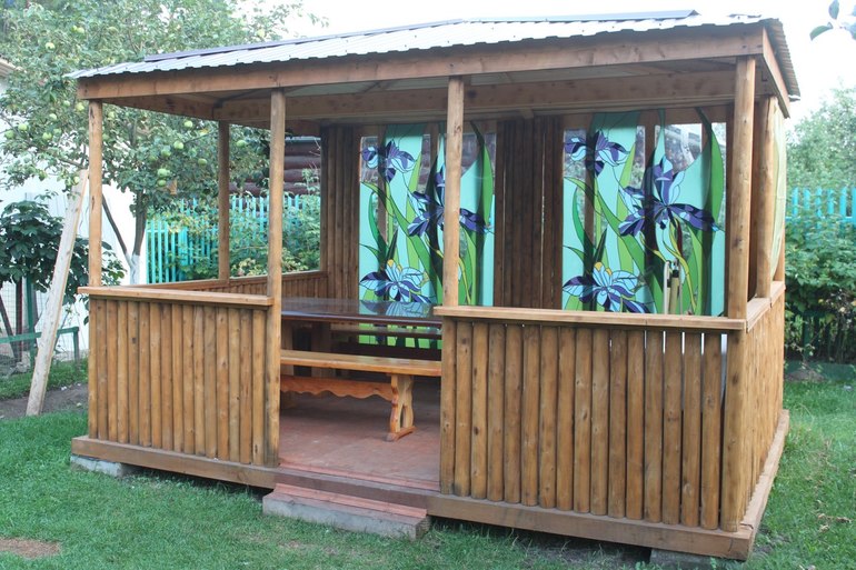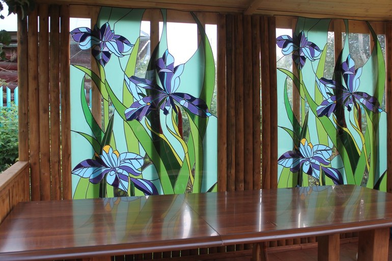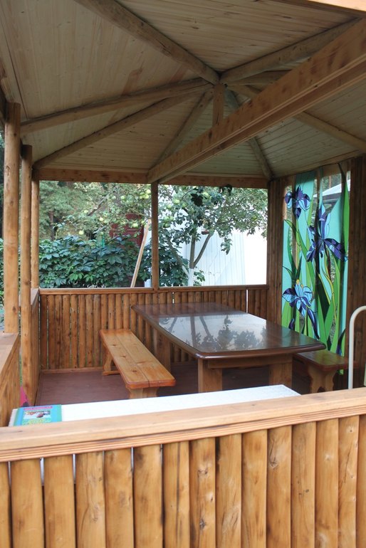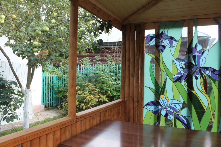 ОТЛИЧНО!!! Мы как раз сейчас делаем уличную беседку (столовую) — в прошлом году залили пол.В этом надеюсь доделаем остальное)Ваши фото ,прям живое воплощение желаний ,а витраж — это просто СКАЗКА !!!Вы — МОЛОДЦЫ!!