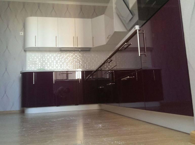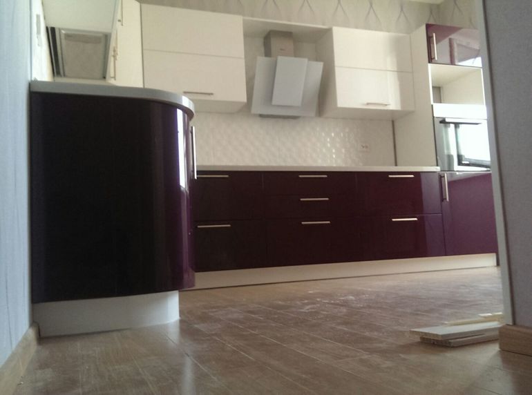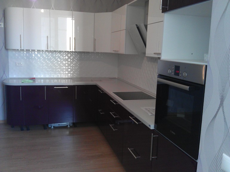 у меня такая же) Белый верх, сиреневый низ. только я выбрала столешницу и фартук темный) И расположено у нас все так же как у Вас) только у нас не изогнутый фасад скраю а скошеный (так дешевле было))))