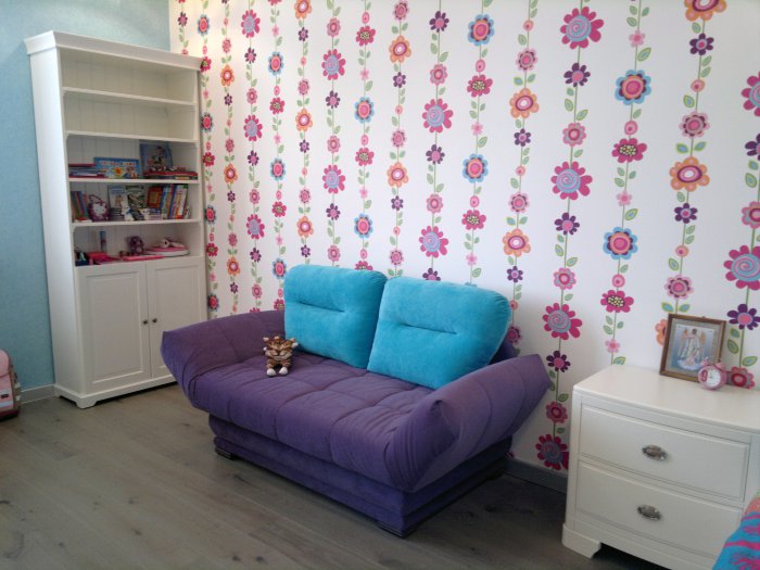 По картинке в гугле можно найти...http://ideas.vdolevke.ru/posts/15280/nestandartnaya-kvartira-detskaya/А вот и обои :Бумажные обои фабрика York коллекция Girl Friends PW3960