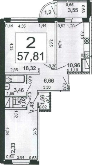 Итак! Имеем мы двухкомнатную квартиру. Ниже планировка и размеры: