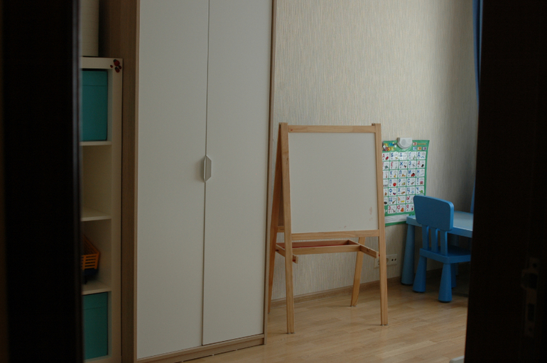 кресло уберите и немного небрежности добавьте: детские рисунки, игрушки достаньте. это детская, а не учительская. белье можно цветное или плед. а вообще хорошо. икея рулит)))