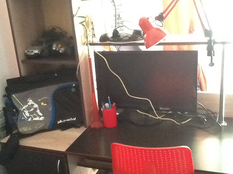 Рабочее место сына, папе осталось провода все провести и доделать))) это я не умею уже))) кресло икеа, лампу с Сималенда заказывала.тоже очень бюджетно получилось)