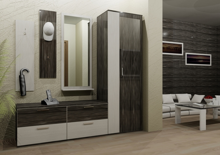 Я бы для верхней одежды сделала б два вешала друг над другом и по ширине 60см(55-очень мало, одежда ровно не повиснет), полки и ящички для сумок 40-50 см, 20, что у вас это просто ключи кинуть, вот посмотрите, что я б сделала(расположение полок, ящиков и вешал зависит от того где вход будет, от эргономики то есть)