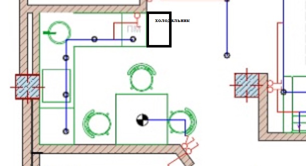 и микроволновку с варочной хочу засунуть в пенал в углу около стола(по дизайн проекту у нас там холодильник сейчас, но думаю неудобно будет, вечно во время трапезы дополнительно достаем что-то из холодильника