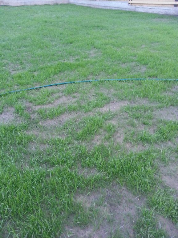проплешины если большие, то смешайте землю с семенами и посыпьте где мало травы.