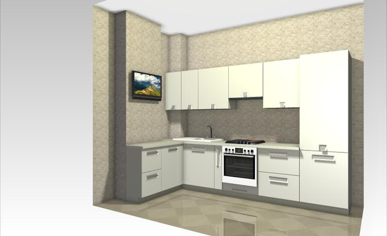 А "Стелла", чисто белый цвет под дерево. При таком эскизе. Без техники и столешницы 67.500руб со скидкой до 15августа.