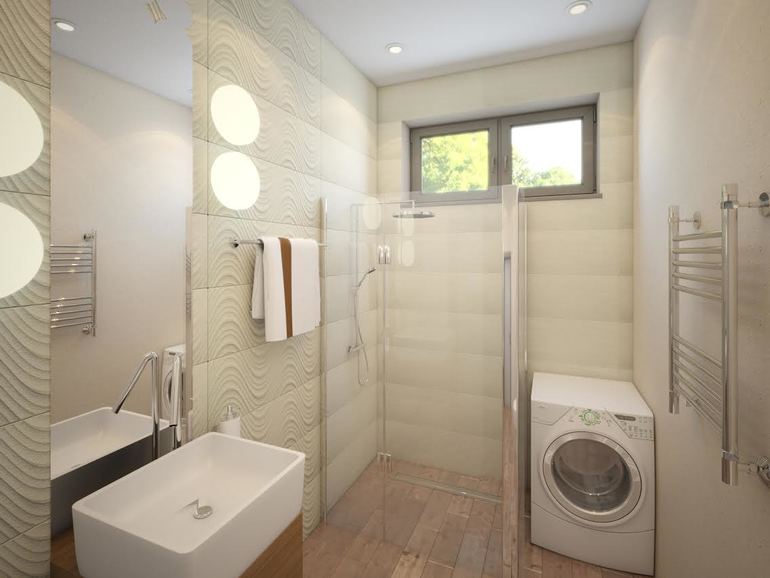 Здесь мне нравится все, единственное, что хотелось бы, это разместить отдельно постирочную, но к сожалению планировка дома этого не позволяет. Поэтому, если вы покупаете готовы проект, не поленитесь, посоветуйтесь со специалистом.