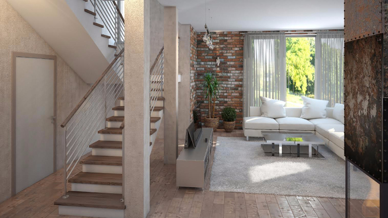 Интерьер делаем в стиле лофт, с использованием штукатурки, металла и дерева, но немного его изменим, т.к. обильное количество холодных цветов не очень нравятся Заказчикам. Исключение - детские,тут поиграем с французским стилем.