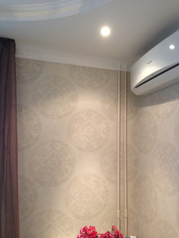 это не у меня ))) вот А вам наверное ничего не надо, труба в цвет стен и все, через неделю вы ее замечать и не будете. У меня газовая труба через весь коридор идет, тоже глаза мозолила. Повесила на них кашпо и успокоилась