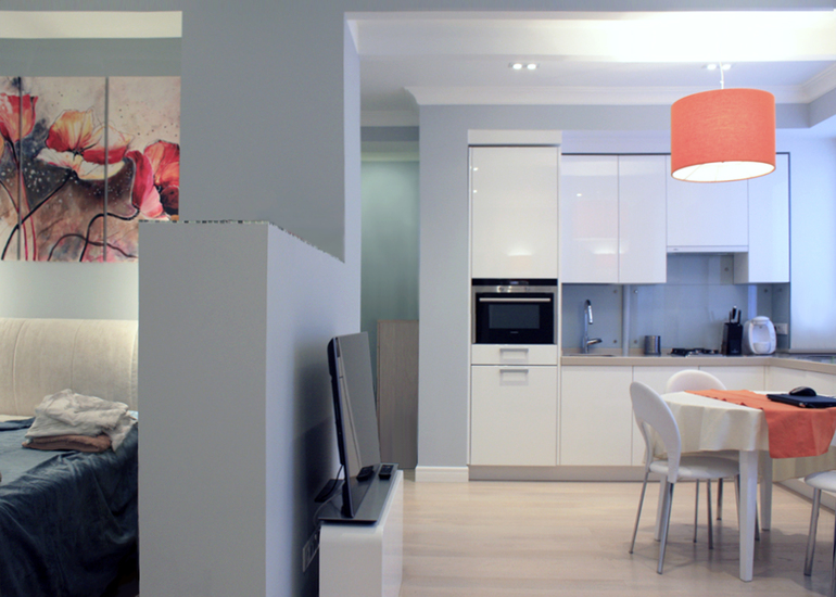 Не так давно закончили квартиру для семьи из трех человек. Задача была не простая т. к. метраж всего 45м2, а функций у нее на все 80 метров.