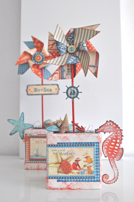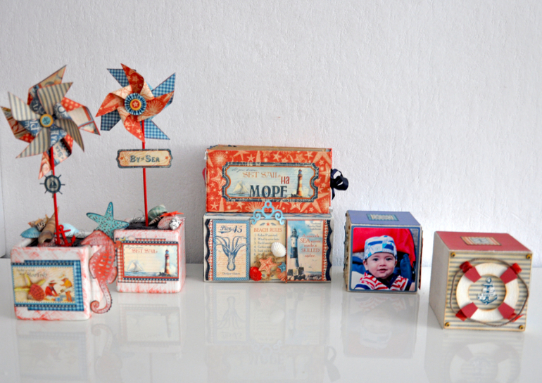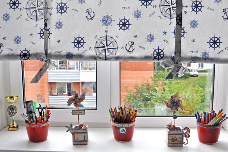 Интерьерные штучки.Детскую своим мальчишкам сделали в морской тематике, а так как я увлекаюсь скрапбукингом, то сделала украшение для подоконника...