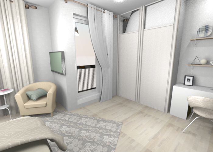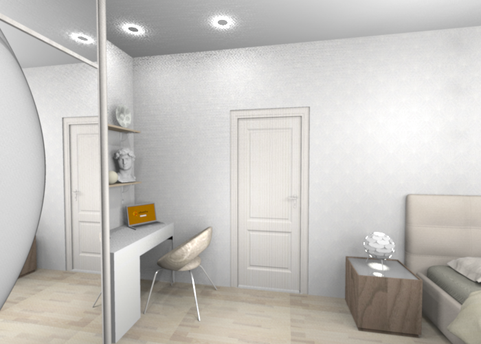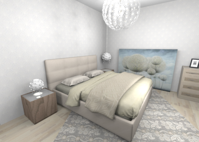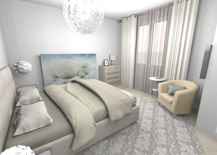 Классно, мне нравится. Узнаю мою спальню, у Вас моя кровать и мое кресло. Только комнатка у меня поменьше будет и цвет беж. КЛАСС. Все как я люблю. И картина именно на полу нравится, пылесборник да, но красиввввввввво