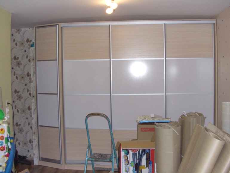 а с другой, в комнате УЖЕ стоит такой шкаф-купе в беленом дубе с белыми глянцевыми вставками:
