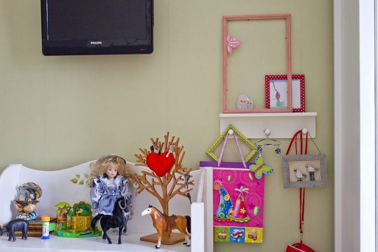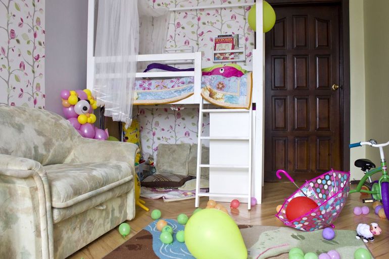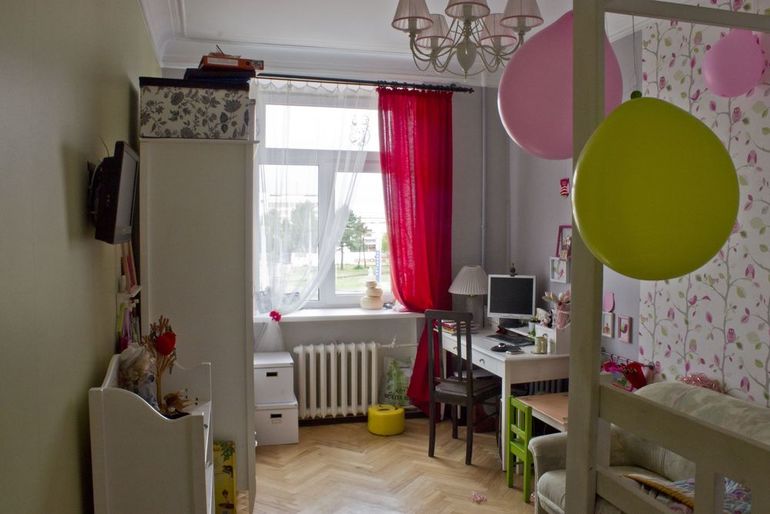 Мебель куплена на вырост, а комната оформлена с яркими деталями специально, чтоб казалась более веселой.
